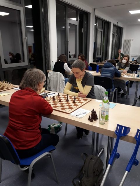 Die erste Nachricht erhielten wir kurz nach 11 Uhr. Anne hat leider verloren. Eine weitere Stunde später waren auch die Partien von Manon und Madeleine verloren. 3:0-Führung für Ravensburg. Ein gebrauchter Tag scheint sich abzuzeichnen. Auch Tabea verlor ihre Partie – dafür konnten Jutta und Estelle noch ein Remis beisteuern. Am Ende steht eine hohe Niederlage zu Buche, mit der man so nicht gerechnet hat. Schade, aber so ist das manchmal.